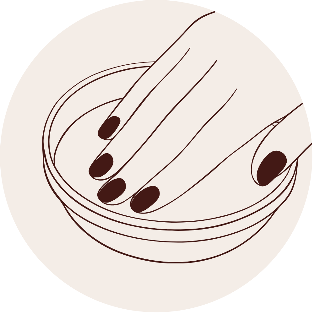 Bade deine Fingerspitzen anschließend 5–10 Minuten in warmem Öl-Seifenwasser und spüre, wie sich die Nägel langsam lösen. Jetzt nimmst du sie einfach ab – ohne Druck, ohne Reißen, ganz sanft.