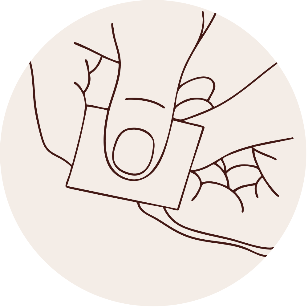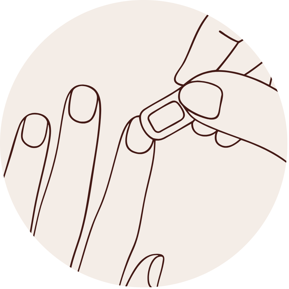- Ziehe die Folie ab, positioniere den passenden Nagel darauf und drücke ihn 20 Sekunden lang auf.