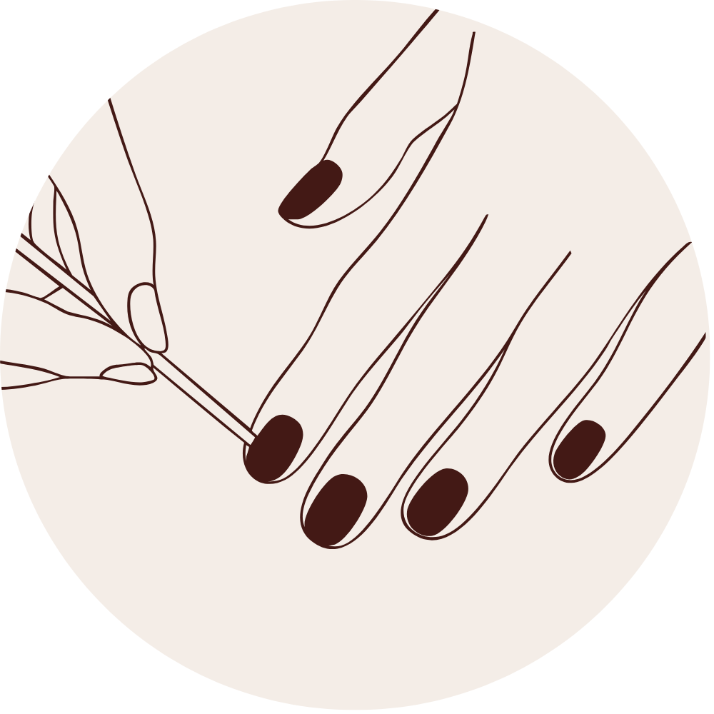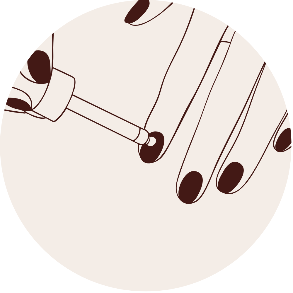 - Trage zusätzlich eine Schicht Kleber auf deinen Naturnagel auf und verteile ihn in kreisenden Bewegungen mit der Pinselspitze. Halte dabei 1–2 mm Abstand zur Nagelhaut.
