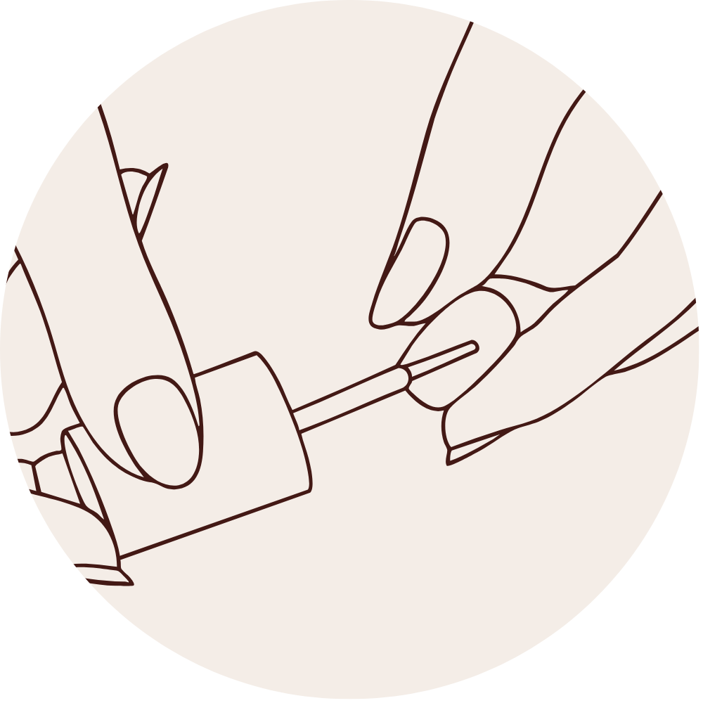 Du möchtest nachhelfen? Dann schiebe das Rosenholzstäbchen zwischen Naturnagel und Press-on Nagel und lockere die Nägel sanft.
