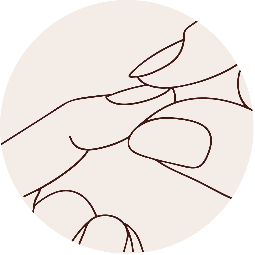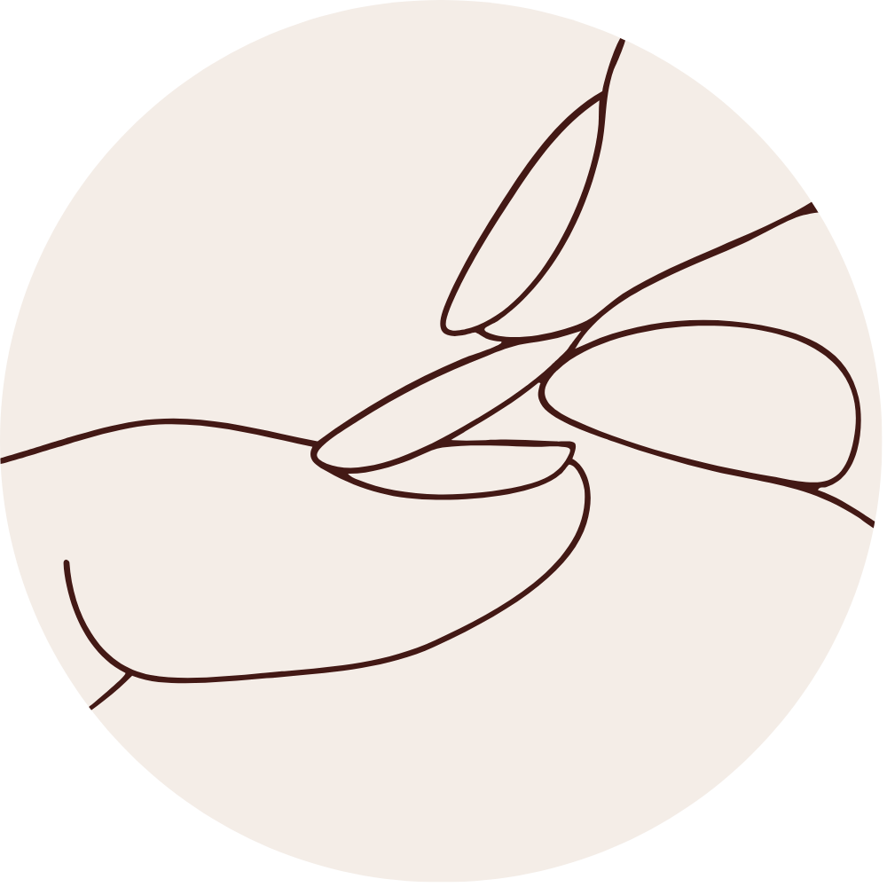 Achte darauf, dass das dickere Ende des Nagelati-Nagels mit der Nummer nach oben zeigt. So schmiegt sich das dünnere Nagelende sanft und passgenau an deine Nagelhautlinie an.